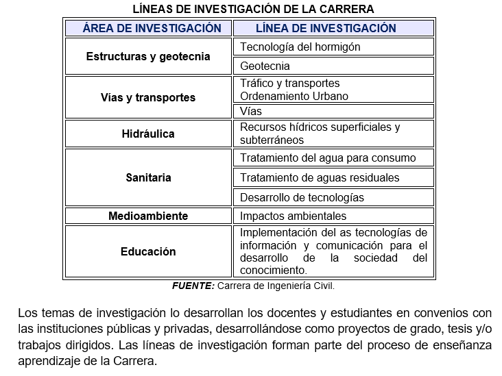 Lineas de Investigacion de la Carrera de Ingenieria Civil